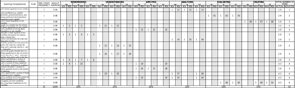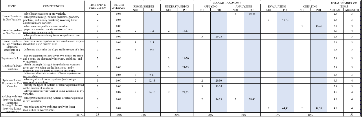 - Table of Specifications: pwedeng Bloom’s format o 21st Century format